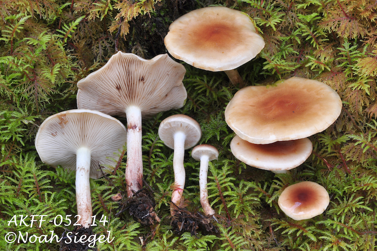 - NOTES: Brown viscid cap, with veil remnants, beige gills, cap 24-37 mm across, punctate stipe. Growing on wood (conifer). Taste mild, odor nil.